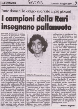 Lo stesso anno si ripetè con grande successo lo stage estivo in cui i campioni della Rari: Manuel Estiarte, Massimiliano Ferretti, Gianni Averaimo insegnavano la pallanuoto.