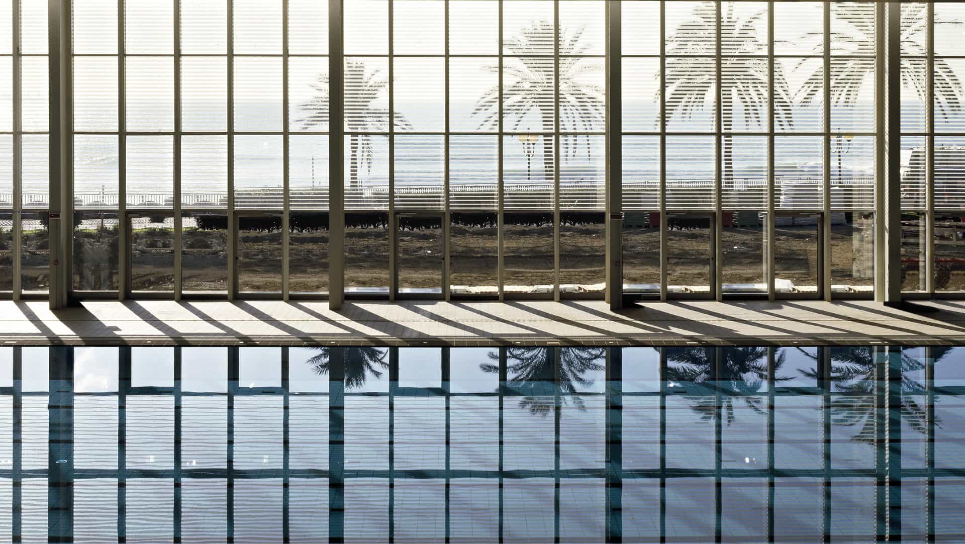 Vasca polifunzionale che permette flessibilità di utilizzo frazionabile, grazie alla piattaforma mobile posta nel lato est che riduce la profondità a 1,2 m.